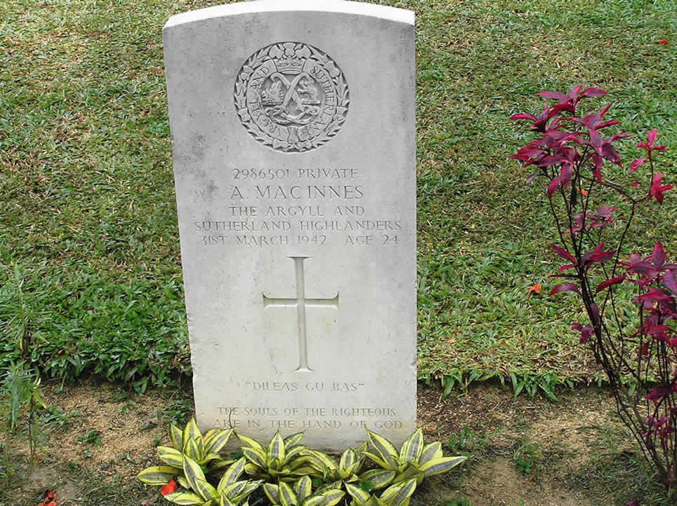 as a prisoner of war of the Japanese 31st March 1942. Aged 24. Son