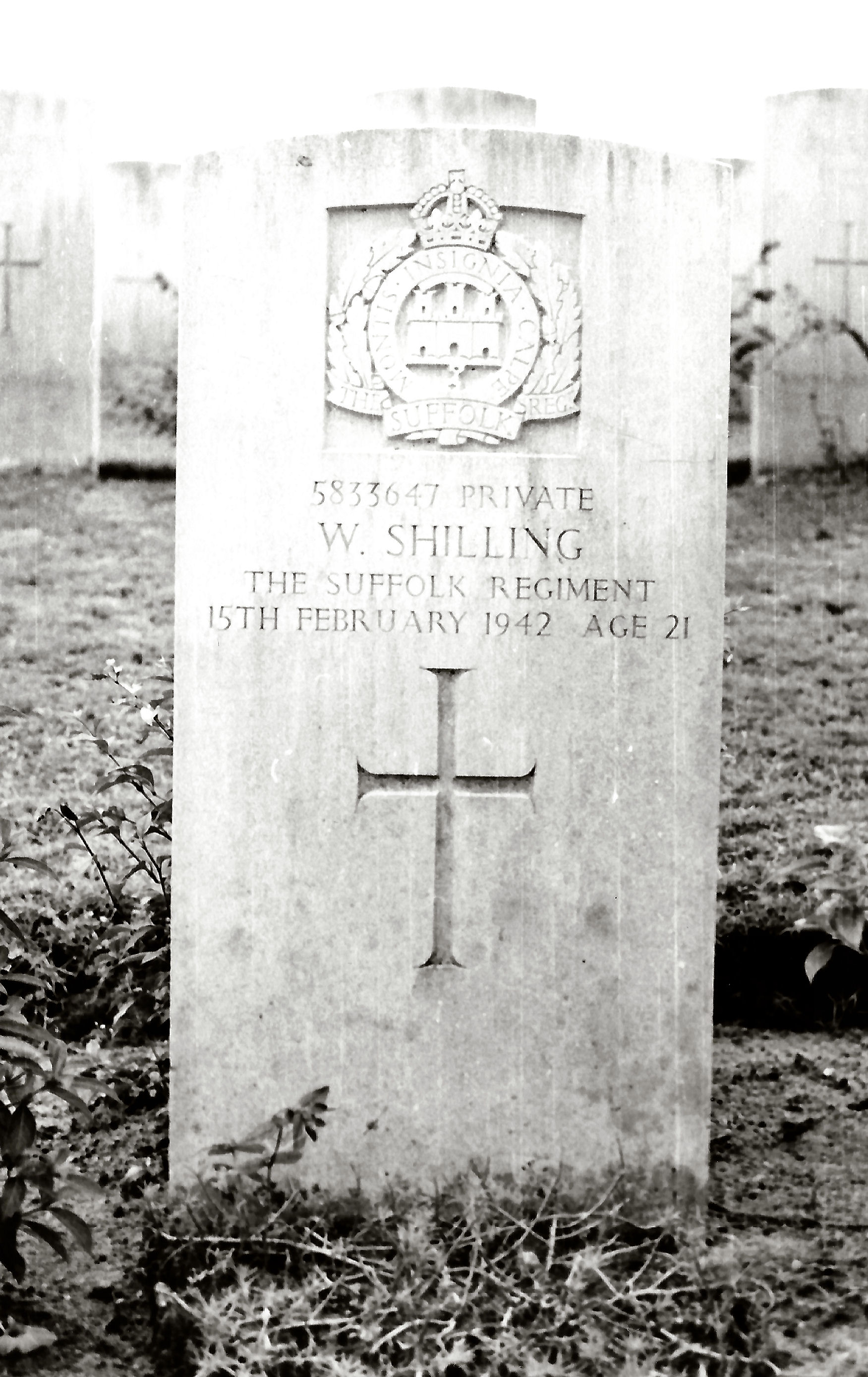 Possibly: Pte. Joseph Leonard Rose, 2nd Bt. Cambridgeshire Reg., d 15/2/1942, age 23, No known grave. Commemorated on Singapore Memorial, Kranji War Cemetery, Singapore. Son of William Rose, and of Annie Rose, of Dudley, Worcestershire. |