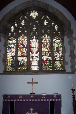Inside the church of Saints Peter and Paul is a stained glass window dedicated to the world war.