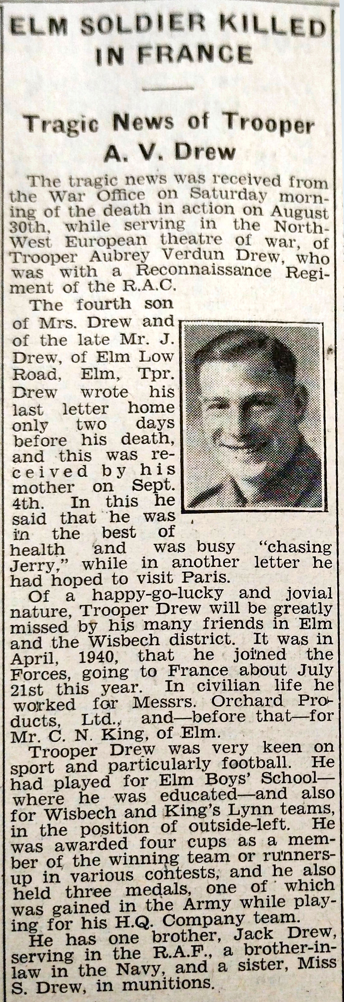 Yet another gallant Wisbech lad has given his life for the cause for which we are fighting—freedom.
