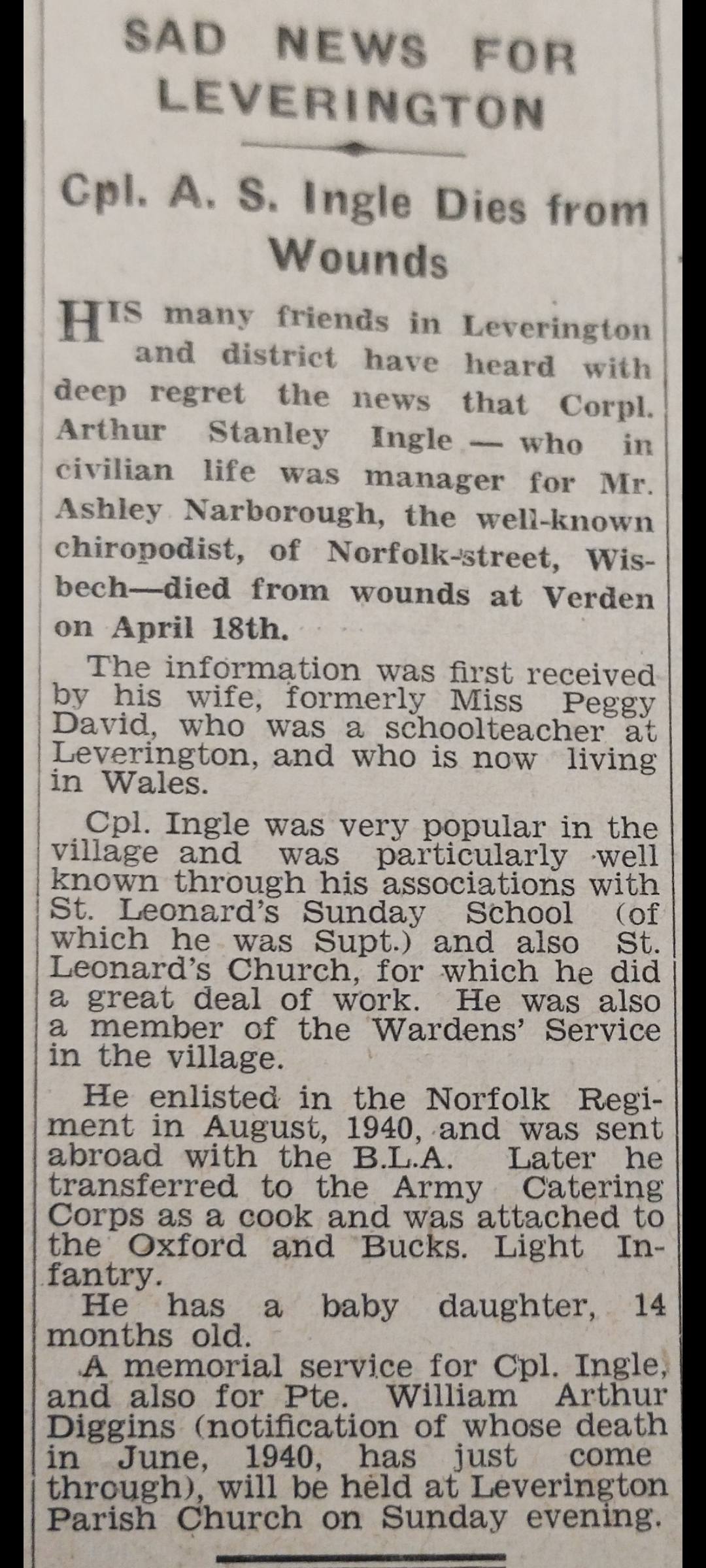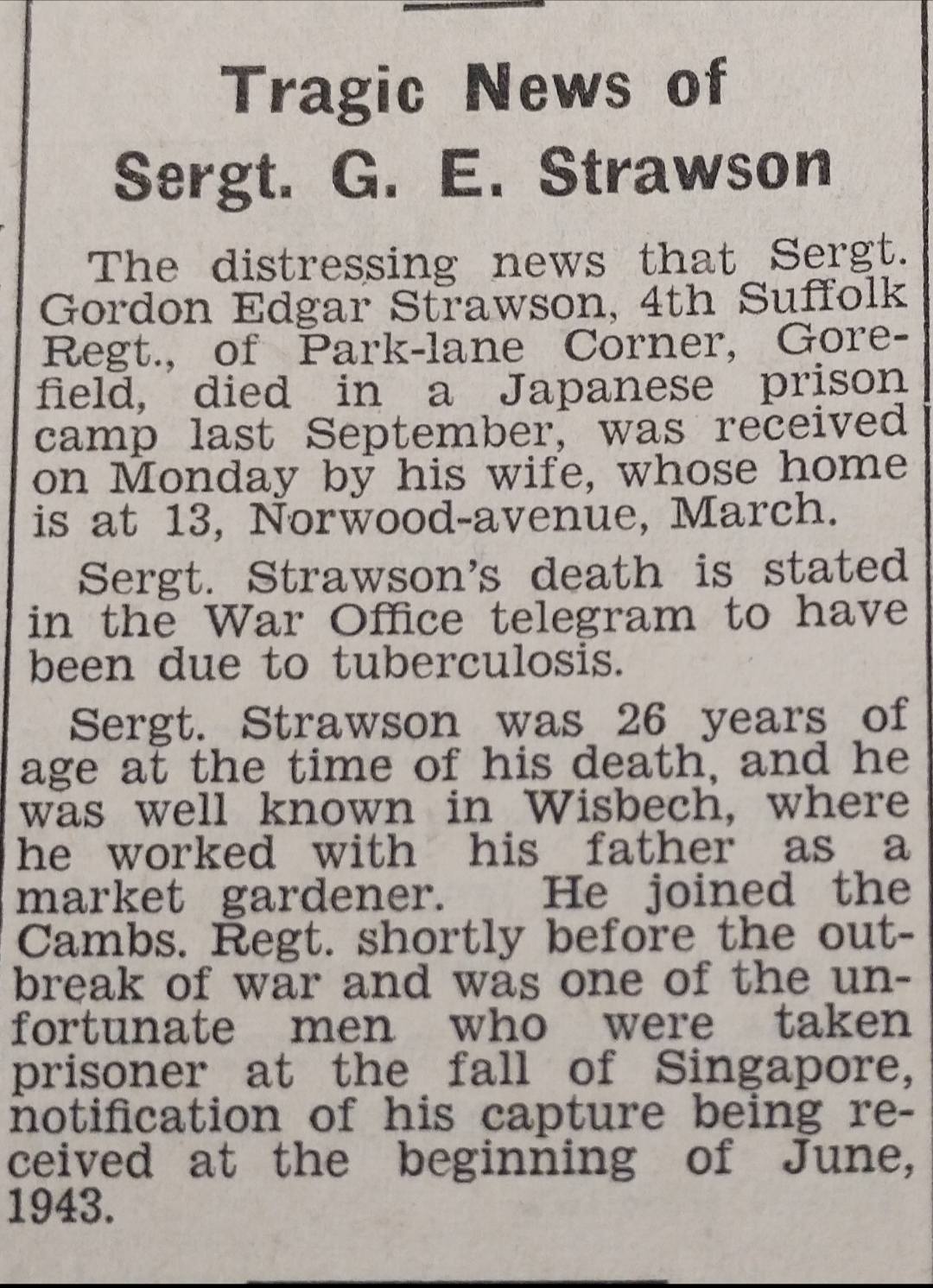 Extract from Wisbech Standard 1944: