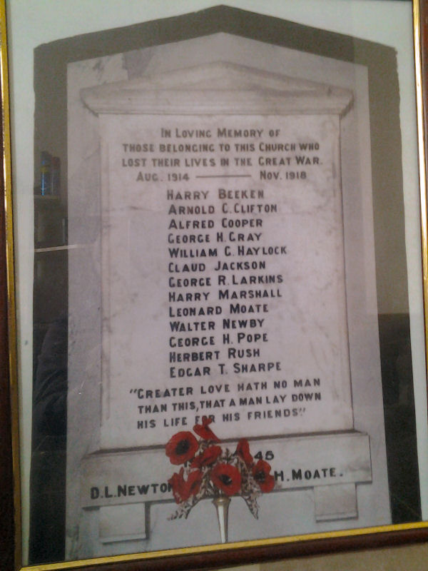 Methodist Chapel memorial. Most of the men named (about 10 to 12) are