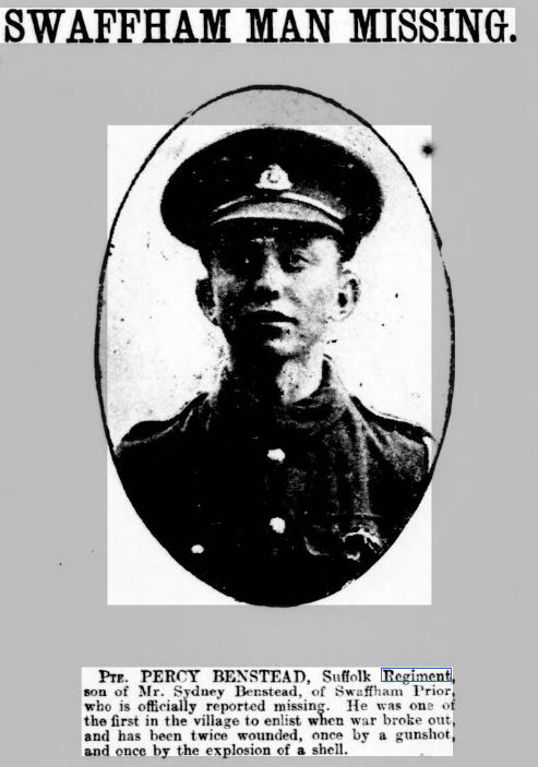 Swaffham Prior, enlisted Cambridge. Son of Frederick and Fanny Benstead,
