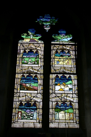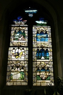 THE STAINED GLASS WINDOWS IN THE AISLES OF THIS CHURCH WERE