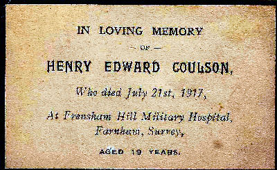 SOLDIER’S DEATH.—The death took place on Monday, at Kelling Sanatorium, Holt, of ex-Lance Corpl. F. C. Beagles, of the 2nd 8th Manchester Regiment, and son of Mr. and Mrs. Charles Beagles, of 70, Norfolk-street. Wisbech. The deceased, who was in his 23rd year, was wounded between the eyes with shrapnel and badly gassed in France in November, 1917, and, with the exception of a sort [sic] time in the employ of Mr. Robert Goodale, Messrs. Balding and Mansell, and Messrs. Clayton and Young, he has either been in hospital or under the doctor's care since. The late Lance-Corporal joined the Cambs. Regt. on Sept. 4th, 1914, and was drafted to France in February, 1917. In January, 1918, he was admitted to the Wisbech V.A.D. until April 2nd, when he was discharged from the Service, and it was then he undertook the work mentioned above, but owing to his health again breaking down last November he was sent to Felling Sanatorium, where he was detained until the end. Before joining H.M. Forces he was engaged at Messrs. Balding and Mansell's as a printer's machine feeder. His remains were conveyed to Wisbech on Wednesday, and the interment took place at the Borough Cemetery yesterday (Thursday). The Rev. G. H. Strange officiated. The coffin was of oak, with brass fittings, and bore the inscription: “Frederick Charles Beagles, died June 7th, 1920, aged 22 years.” The mourners were: The mother, Messrs. George, Jack and Stanley Beagles (brothers), Mr. and Mrs. J. Cooke (friend), Mrs. Matthews and Mrs. Reed (aunts)‘ Amongst the numerous floral tributes were the following: “Mother and Brothers,” “Mum and Dad,” Mr. and Mrs. J. Cook, “George and Doris,” Mr. and Mrs. G. Martin (uncle and aunt) and family, Mr. and Mrs. H. Steward (cousins), Mrs. T. Beagles and family, Mrs. J. Beagles (grandmother), “Fellow patients at Sanatorium,” “Officers of 2/1st Cambs. Regt.,” Mrs. Matthews (aunt), Mrs. Reed (aunt), 'Mrs. H. Tann, "”Workmates at Messrs. Clayton and Young's,” “Workmates at Messrs. Balding and Mansell's,” Miss Gathercole, Mrs. Shearman and family, Mrs. Bates and family, Mr. and Mrs. Woods and and family, and Mrs. Rogers (grandmother).