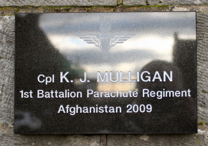 Kwvin MulliganCorporal 25151078, 1st Battalion, Parachute Regiment. Killed in an ambush in Helmand, southern Afghanistan, while a member of the Special Forces Support Group when a bomb exploded in the path of their armoured vehicle 6 August 2009. Aged 25. Born 4 December 1983.