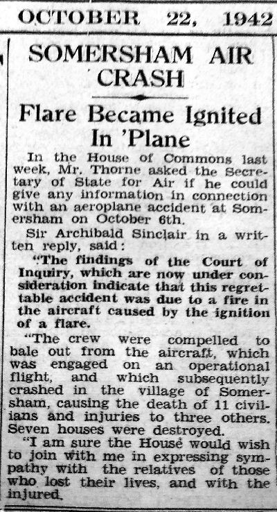 | Statement made in the House of Commons | Report of Crash | |||