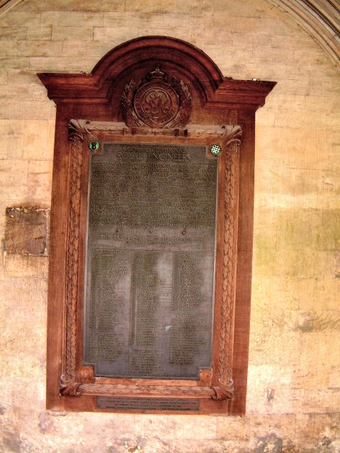 34th NORFOLK DIVISION ROYAL ENGINEERS OUR COMPANIES WERE RAISED IN THE SPRING OF 1915, BY I, GORTON MOON, LORD MAYOR OF NORWICH AND WERE BILLETED IN THE HALL, THEY CROSSED TO REACH, UNDER THE COMMAND OF Col. A. C. MacDONNELL IN JANUARY 1916. AND WERE IN ACTION AT THE BATTLE OF THE SOMME, (La BOISELLE, July 1st; BAZENTIN - Le PETIT, AUG. 1916, BATTLE OF ARRAS, POINT JOUR APRIL 9th, RIVER SOARN APRIL 1917. LOCAL ATTACKS AT PAMPOUX (GREENLAND HILL JUNE) AND HARCOURT (COLOGNE FARM SEPT 1917) THE BATTLE OF YPRES (POECAPPELLE OCT 1917) AND THE GERMAN OFFENSIVE (CROISELLES MAR 21ST ARMENTIERES APRIL 9th 1918). THEY ATTACKED WITH THE FRENCH ARMY (SOISSONS AUGUST 1918) WERE IN THE FINAL ADVANCE ( MENIN SEPT- OCT 1918) AND THE ARMY OF OCCUPATION (COLOGNE 1919) THE COMPANIES WERE DISBANDED AT RIPON ON DECEMBER 10th 1919. THIS TABLET IS ERECTED TO THE MEMORY OF THE FOLLOWING. |