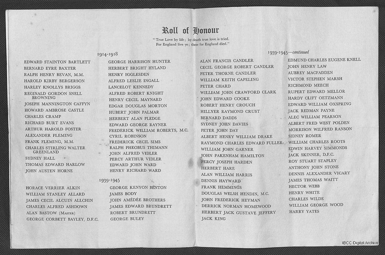 Attended school from 17th January 1913 to December 1916. Private 9814, “D” Company, 2nd Battalion, Honourable Artillery Company (H.A.C.). Died Italy Thursday 25th July 1918. Born 9th October 1898 at Littlestone, Kent. Enlisted Canterbury. Resided “Thirlmere”, Littlestone, Kent. |